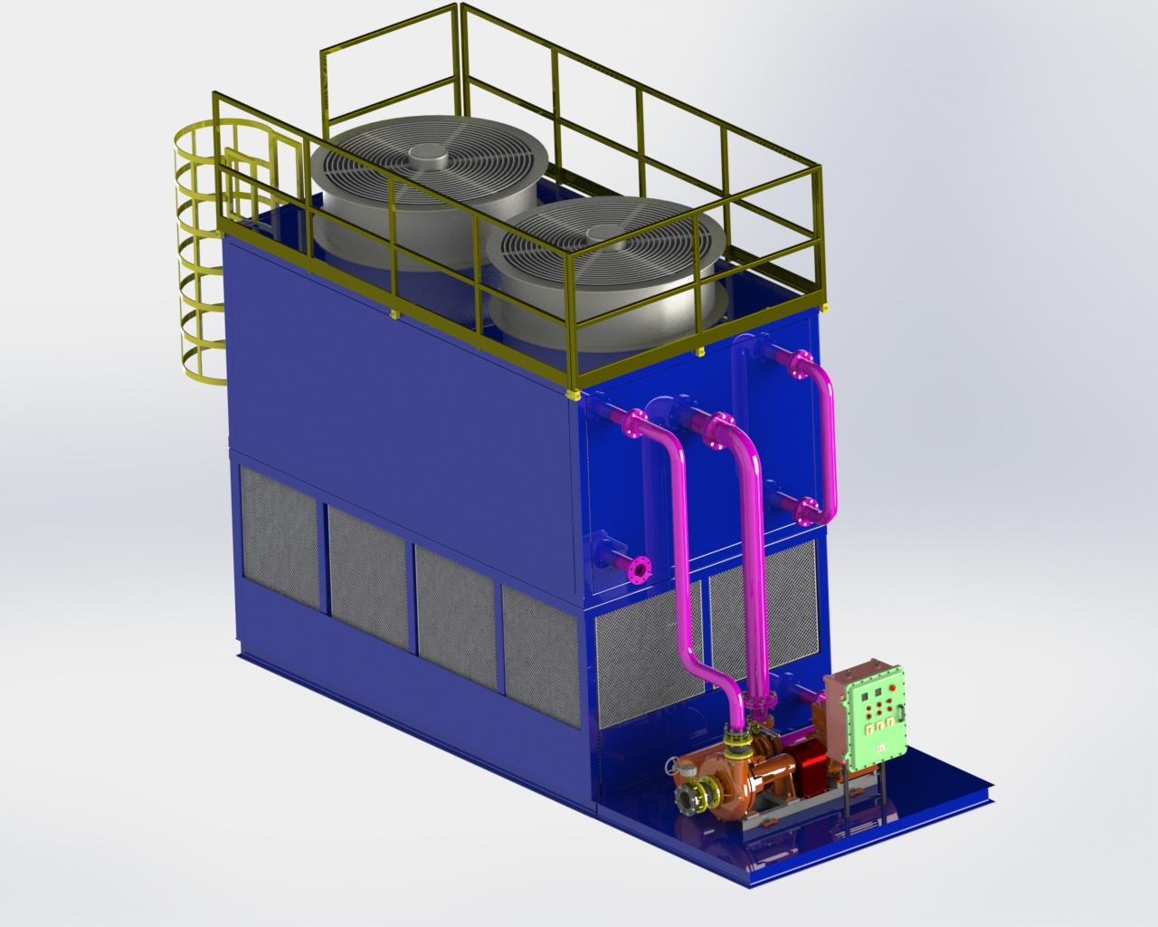 Система охлаждения бурового раствора является системой охлаждения бурового раствора, KOSUN разрабатывает процесс для удовлетворения более высокой температуры охлаждения бурового раствора, разница температур охлаждения бурового раствора 20-40 ℃, эффективно продлить срок службы бурового долота и бурильных труб, повысить эффективность буровой установки, и в то же время значительно снижает риск эксплуатации, вызванный слишком высокой температурой бурового раствора, и другие факторы. Основным принципом охлаждения бурового раствора является воздушное охлаждение, водяное охлаждение или смесь воздушного и водяного охлаждения, Xi'an KOSUN в сочетании с ситуацией на месте буровой установки, чтобы дать клиенту с учетом соответствующих, энергосберегающих, автоматического управления более эффективной саморазвивающейся системы охлаждения.